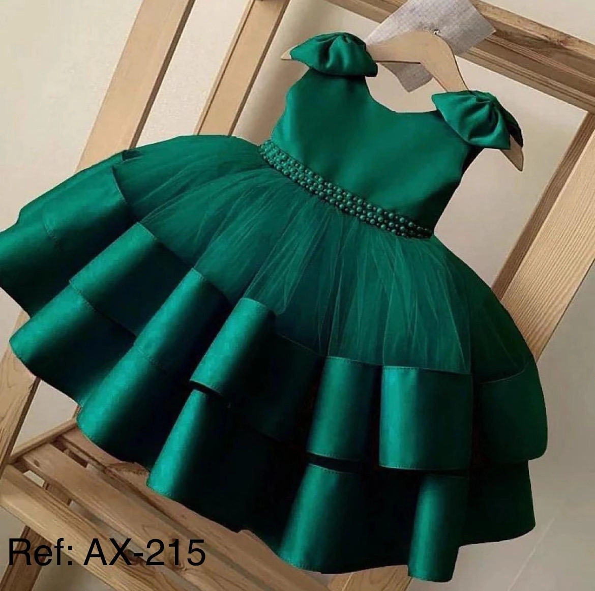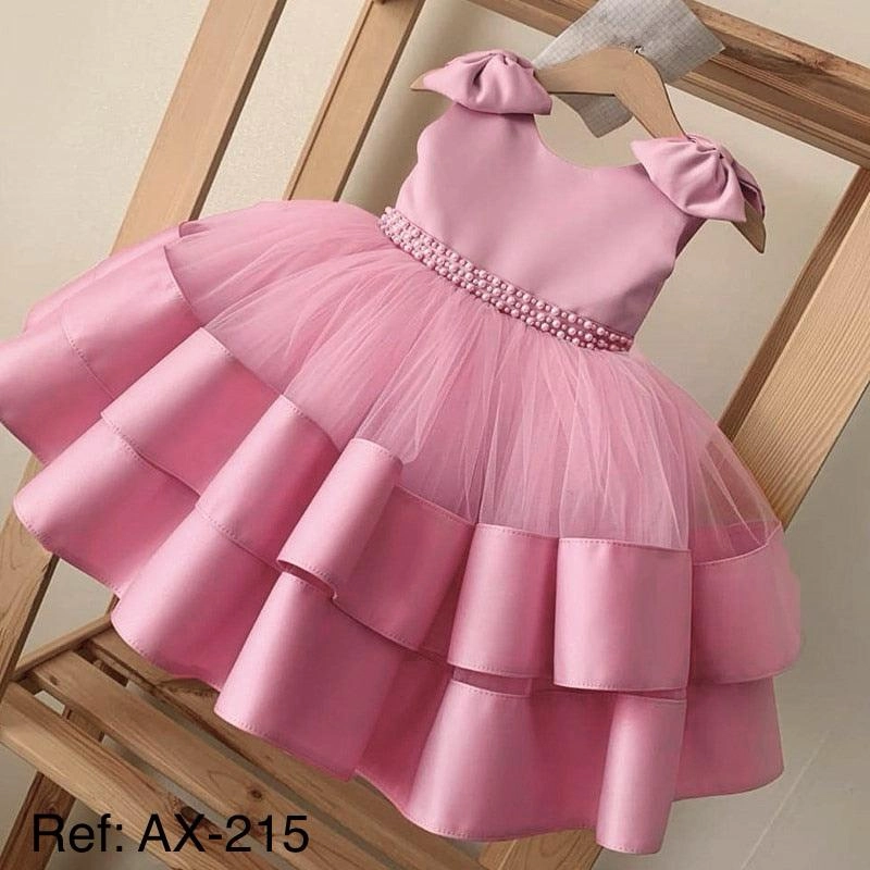 Un vestido elegante y encantador que captura la magia de los momentos especiales. Confeccionado en satén suave combinado con tul, presenta un diseño de falda de volantes en capas que aporta volumen y movimiento. La cintura está decorada con un delicado cinturón de perlas que añade un toque de distinción, mientras que los lazos en los hombros completan un look dulce y sofisticado. Disponible en varios colores para adaptarse a cada estilo y ocasión.